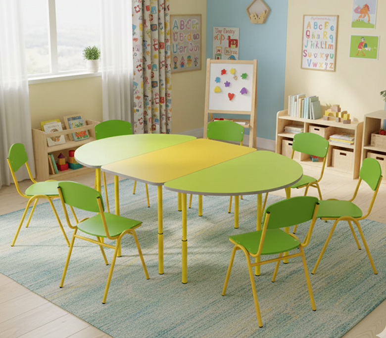 - Столик рассчитан на 8 детей, с возможностью заниматься группами.