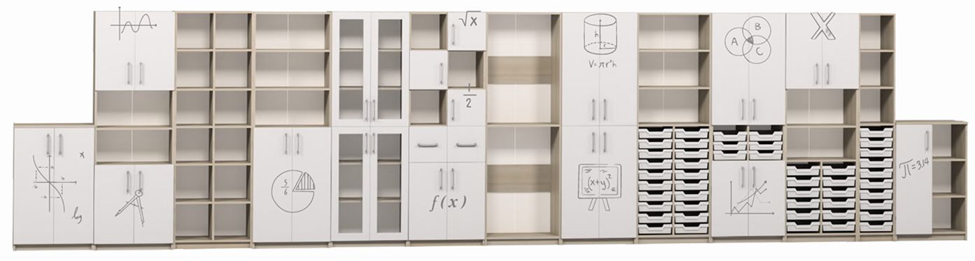 - 2 - Шкаф полузакрытый. Шкаф имеет 4 закрытых и 2 открытых полки. Предусмотрена регулировка отдельных полок по высоте. Фасады шкафа выполнены с использованием фотопечати.
