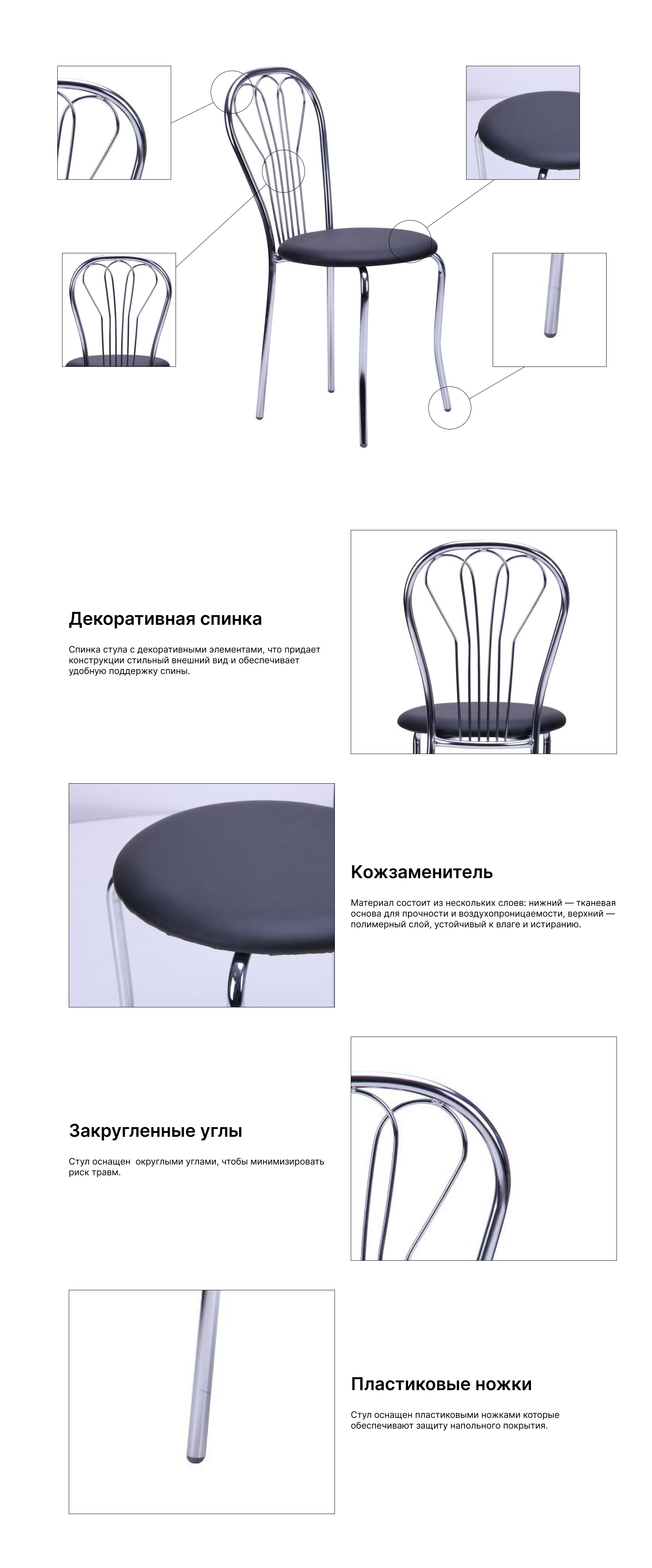 - Каркас выполнен из прочного металла цвета хром, который обеспечивает надежность и устойчивость конструкции.