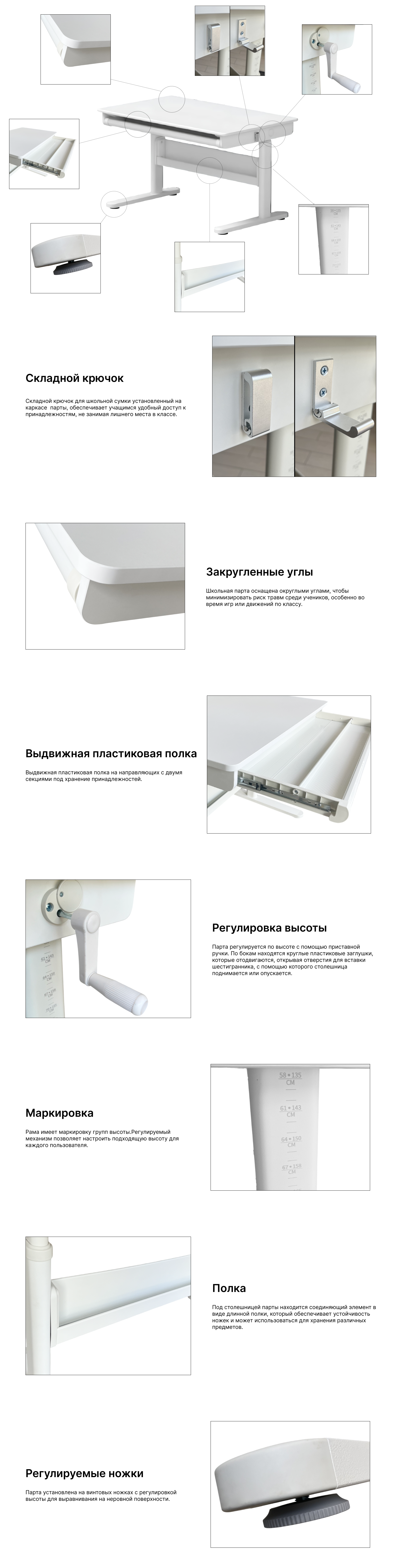 - Столешница парты - со скруглёнными углами, что делает парту безопасной при использовании.