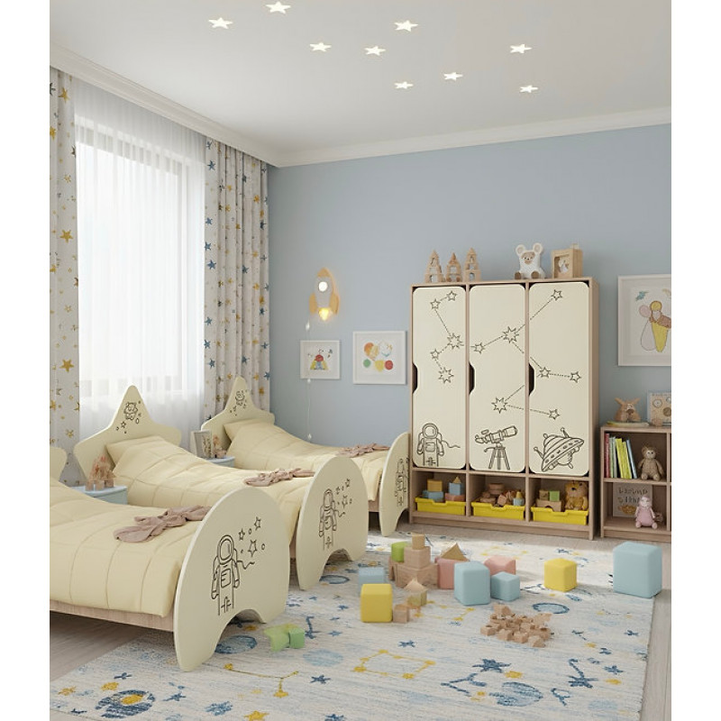 - Partile laterale sunt acoperite cu imprimare foto – imagine spatiului cosmic, stele, cosmonaut.