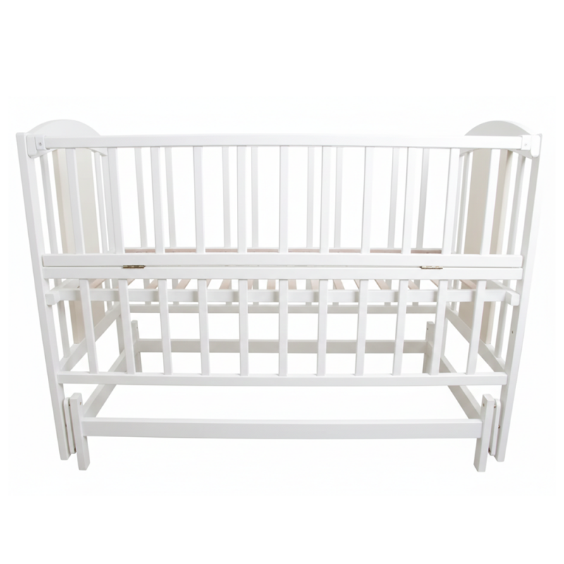 - Partea laterala a patului se pliaza, facilitind accesul la copil.
