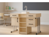 Центральное рабочее место для преподавателя включает стол с полками для хранения материалов и просторное место для работы с ноутбуком.