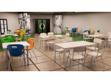 Mobilier colorat — Scaunele sunt în culori vii, precum verde, albastru, galben și portocaliu, oferind un aspect vesel și energizant. Acestea sunt realizate din materiale durabile și confortabile, oferind suport ergonomic elevilor.