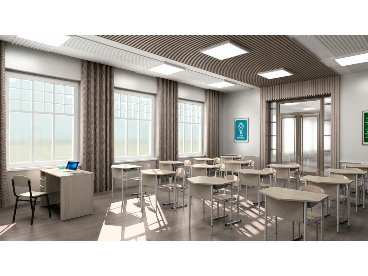 Ambianța unei clase joacă un rol esențial în procesul educațional, contribuind la crearea unor condiții eficiente de învățare și interacțiune între elevi și profesor. În fotografie este prezentat un exemplu ideal despre cum ar trebui să arate o sală de clasă modernă.