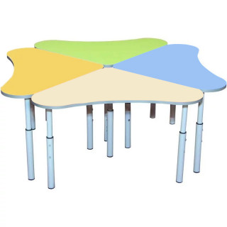 В ассортименте есть столики различных вариантов дизайна – в форме лепестка, цветка и колокольчика, это дает возможность использовать столы не только для групповых занятий, но и для индивидуальных. Каждый стол оборудован системой регулировки по высоте. Это позволяет отрегулировать параметры стола под любую возрастную категорию. Благодаря чему осанка ребенка не будет деформироваться, а будет всегда находиться в правильном положении. Также стоит отметить, что стол оснащен переходными втулками и пластмассовыми наконечниками, защищающие пол от царапин.