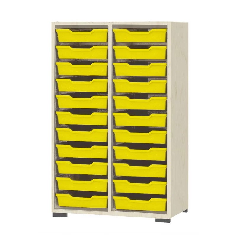 - Dulapul include 22 cutii de depozitare din plastic Gratnells N1 in culori galben, maro.