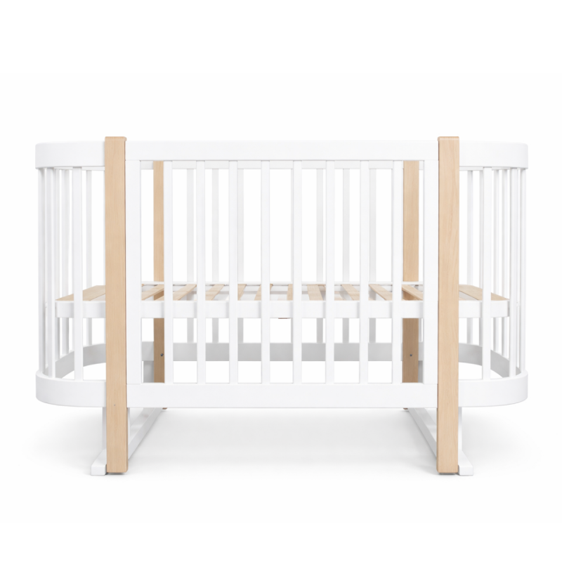 - Patul este fabricat din lemn masiv, fag și arin, acoperit cu lac non-toxic.