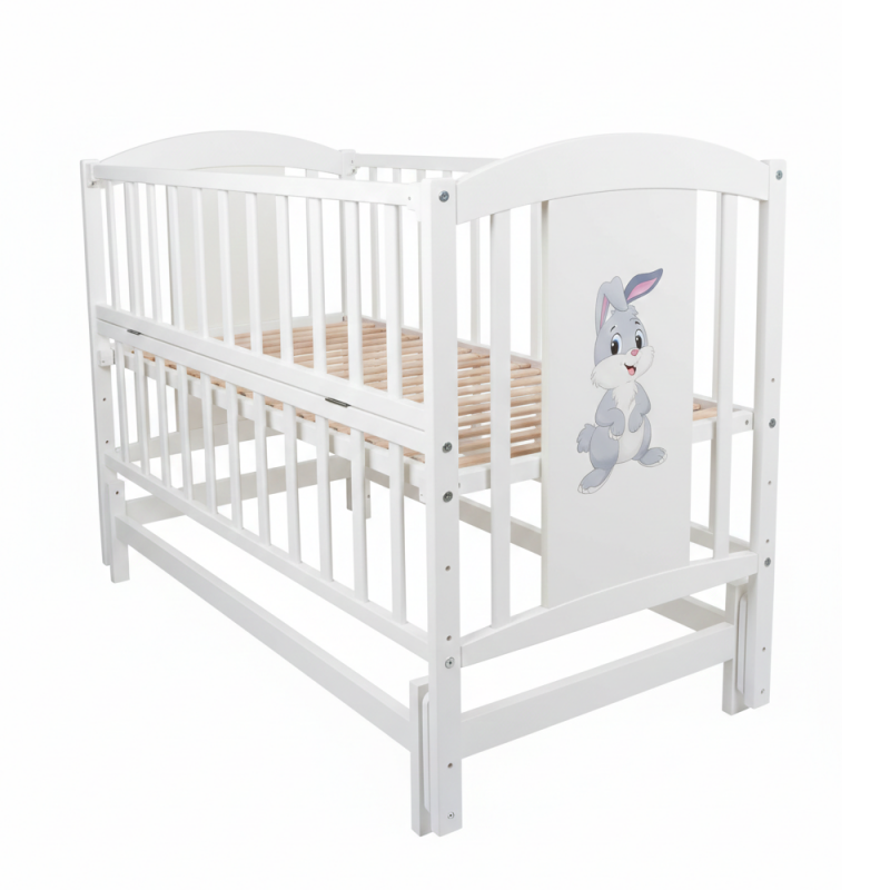 - Partea laterala a patului se pliaza, facilitind accesul la copil.
