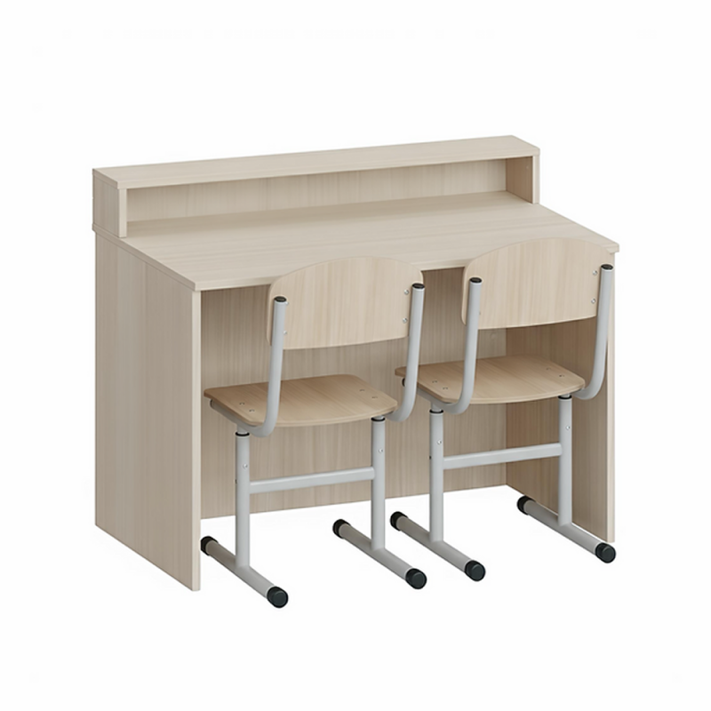 - Masa este formată din blat, două panouri laterale, ecran și raft.