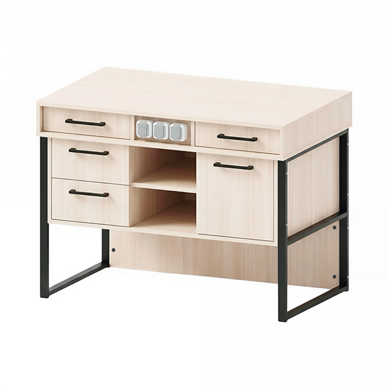 - Masa este compusă din blat, corp lateral și partea centrală cu trei prize.