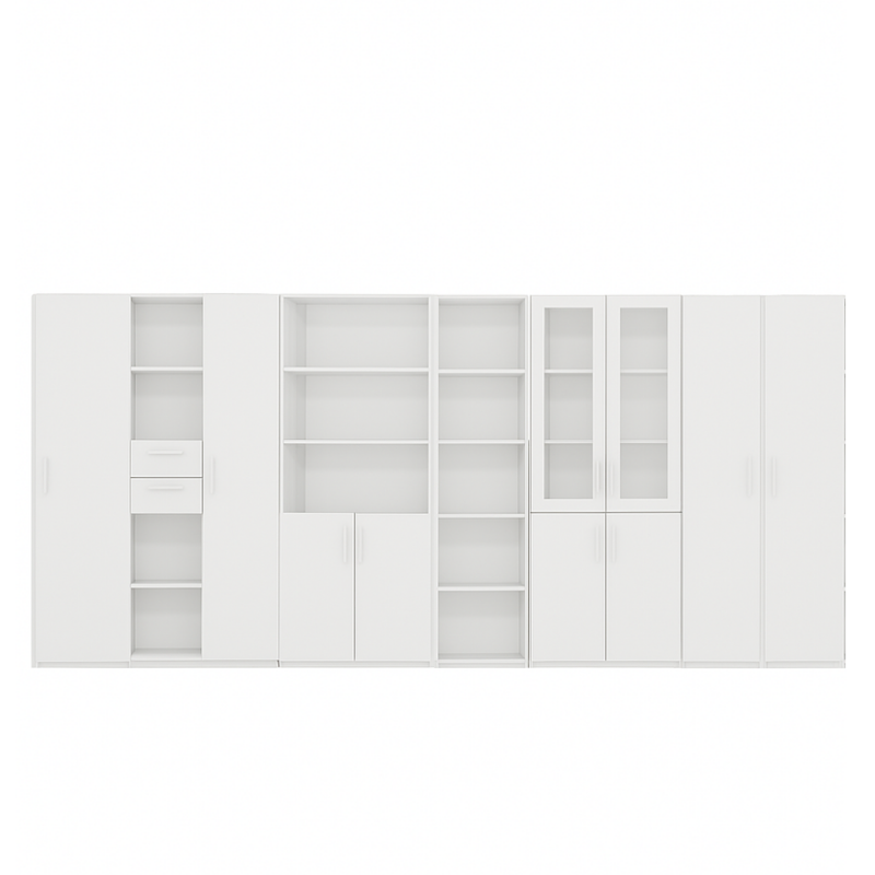 Setul de dulapuri permite achiziționarea tuturor elementelor împreună și, dacă se dorește, schimbarea aranjamentului acestora.